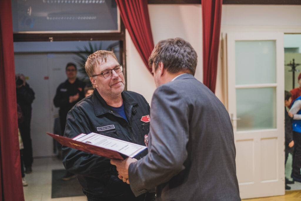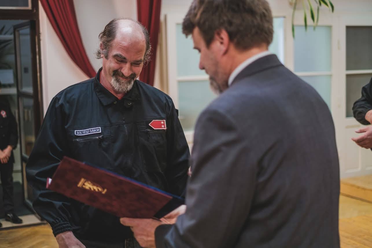 • Soltész Gábor önkéntes tűzoltónak. 1975-ben született. Öccse és barátai hívására 19 éves korában csatlakozott az Önkéntes Tűzoltó Egyesülethez. Rengeteget jártak versenyekre, gyakorlatokra, valamint motokrossz versenyekre rendezvénytt biztosítani. Ekkor már id. Komlós Tibor volt a parancsnok és a fő toborzó mester is. Leginkább a segítségnyújtás inspirálta és hogy itt vannak a barátai. Legmaradandóbb emléke a 2013-as nagy Dunai árvíz. Munka után délután 2 órától hajnali 4-ig töltötték és rakták a homokzsákokat. Azon az éjszakán tíz fővel tizenegyezer zsákot töltöttek meg a Margit-szigeten. Azóta is fáradhatatlanul végzi a dolgát. „Én egy átlagos emberke vagyok és teszem a dolgomat, ha kell.” zárja gondolatait beszélgetésünk végén és talán nem is gondol bele, hogy pont ebben tér el az átlagtól.