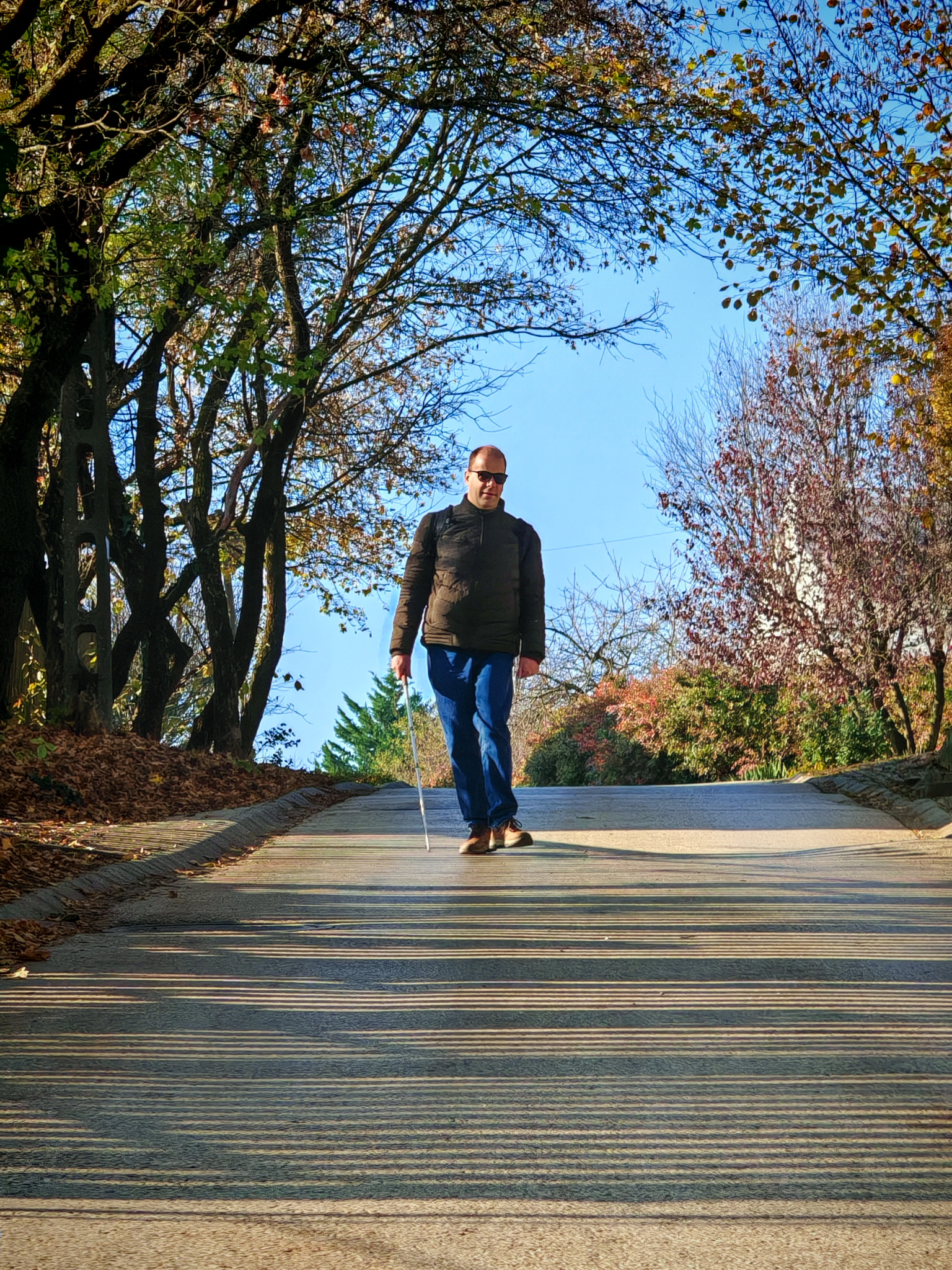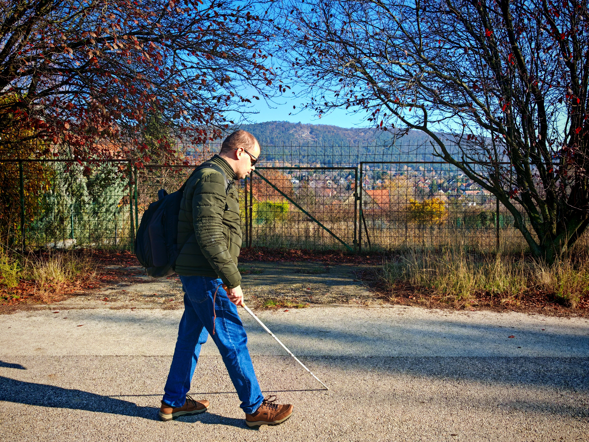 Csányi Márton húsz éve közlekedik közöttünk önállóan, fehér bottal. Az interjú kapcsán is házhoz jött. Pilisborosjenőn él tehát, Váchartyánban tanít, és kántorként szolgál a helyi és ürömi templomban. Támpontok mutatják számára az utat – nemcsak közlekedéskor, hanem az életben is.