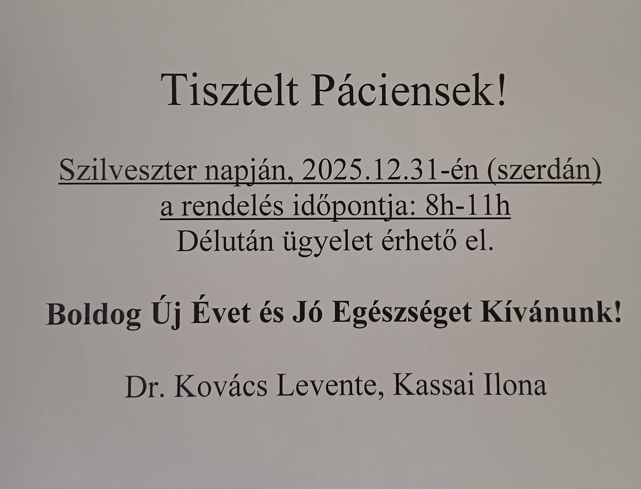Dr. Kovács Levente és asszisztense, Kassai llona fog minket helyettesíteni.