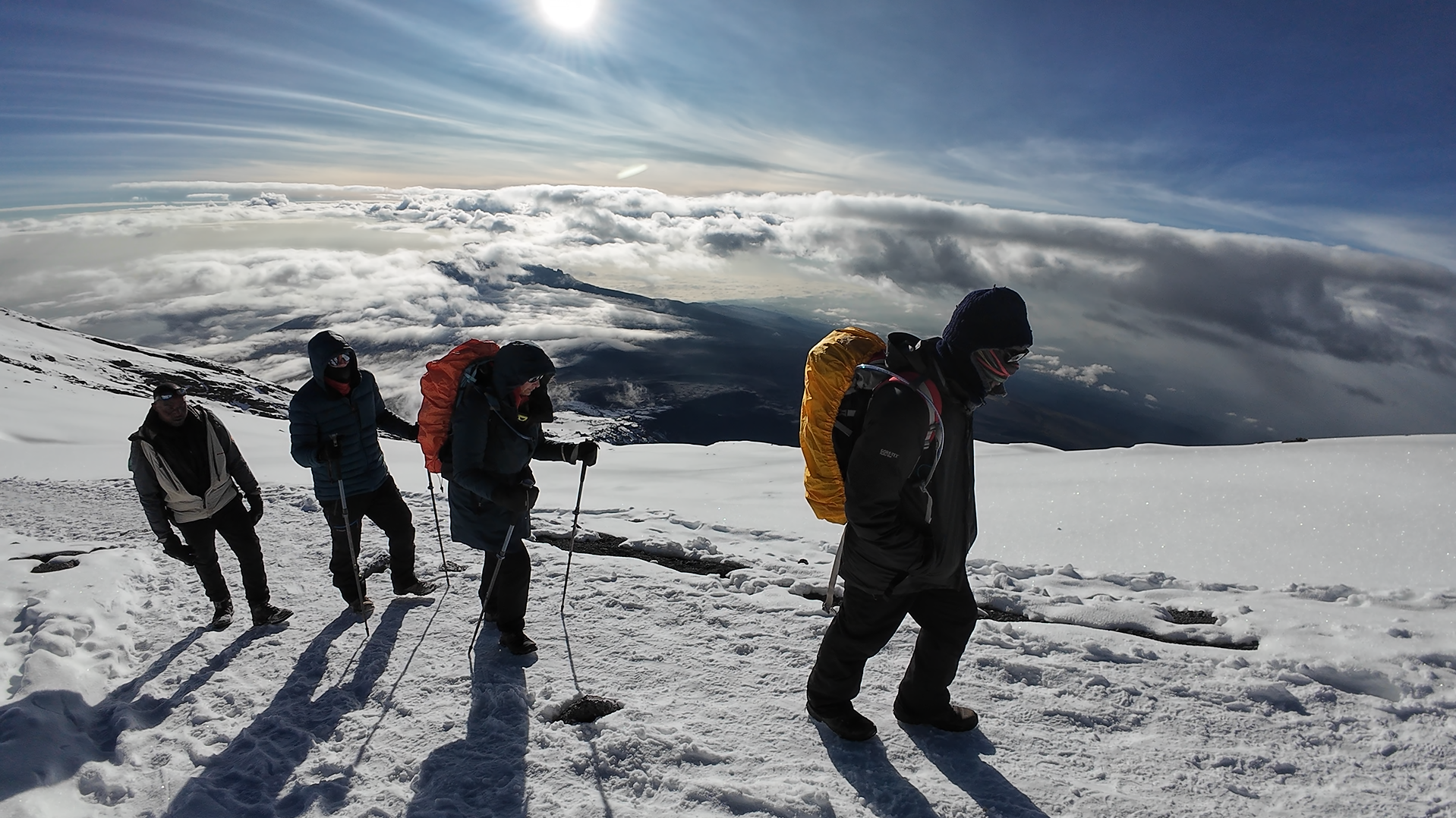 Innentől jöhetne jó sok kaland leírása, a repülőút során elveszett csomag, a többféle időjárási körülmény megélése, a hideg sátor, az oxigénhiányos napok harmadikjának estéje, amikor a hátizsákot másnapra bepakolni is kihívás volt, mindenféle rosszullétek, csigalassú tempó, amikor “egy óra alatt teszel meg egy 100 méteres emelkedőt”. Teljesen csak a fizikai lét köt le, a létezés kihivásai, hogy enni kell rendszeresen, pedig nincs étvágyad, ugyanakkor 4000–5000 kalóriás napokat kell teljesíteni, ezért muszáj a müzliket letolni. Vagy hogy napi 4-5 liter vizet meg kell innod, hogy valamennyire akklimatizálódni tudj. És hogy minusz 17 fokban indulsz el éjjel csúcstámadni, mert nappal már leégne rólad a bőr. És ami fölfelé 5,5 nap, az lefelé másfél. Nincs idő mindenféle civilizációs szorongásra, vagy múltban-jövőben tévelygésre, csak a jelen van. Sötétben hegyet mászni pedig egyenesen zarándoklatnak bizonyult. “Kiürült a fejünk a szó jó értelmében, rend lett benne. Mit üzen a testem, hogyan tegyem az egyik lábam a másik mögé? Ezek foglalják le a gondolatok száz százalékát. Nincsenek hírek, bevásárlás, napi problémák.”