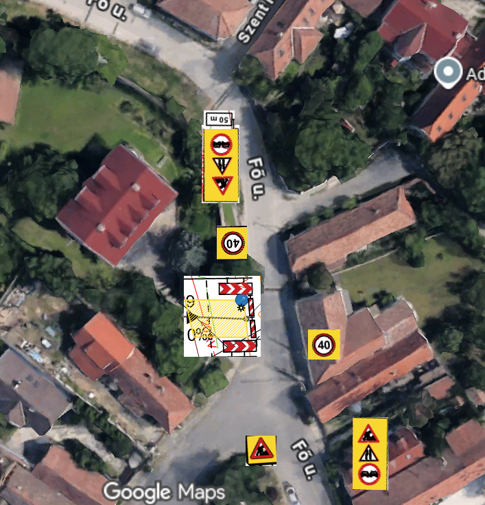Csatorna építési munkálatok miatt a Kossuth tér 4. szám előtti közterületen ideiglenes forgalomtechnika került kiépítésre.