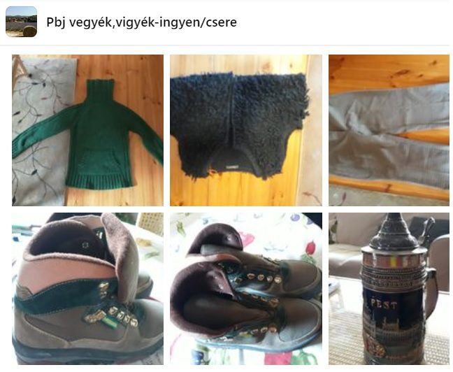 Ez a csoport azért jött létre, hogy a Pilisborosjenőn élők egymás között el tudják cserélni a már kinőtt ruhákat, megunt tárgyakat. Itt nem lehet pénzért hirdetni, arra van külön adásvételi csoport. A ruhákat ingyen vagy a kért cserealappal lehet elvinni. Csak olyan dolgokat kérnek felajánlani, ami szép állapotú, nem agyonhasznált.